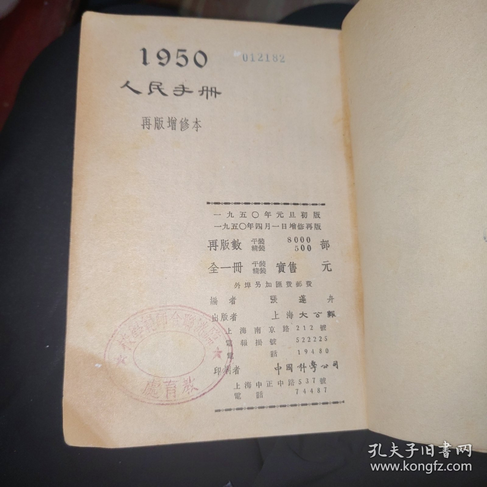 1950年人民手册(再版修订本),1950年增修版,32开