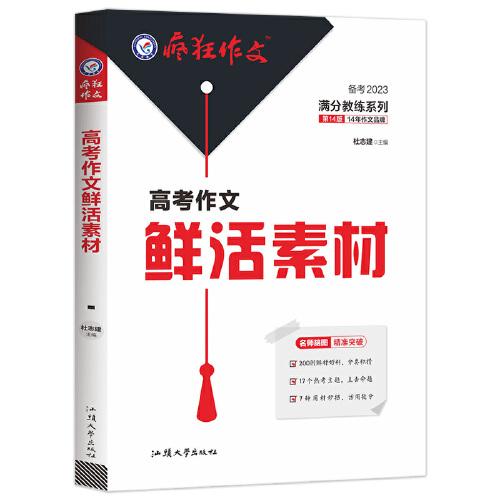 面对高考作文命题的特点以及考评的实际情况,《疯狂作文》以14年专注高考作文研究的积淀,联合阅卷老师、作文专家,从素材积累、主题备考、技法活用、考场实战四个方面,教你攒材、析材、用材之道。鲜?头条素材手账,备足新鲜好材高效抢分,横向呈现热点人物与热点事件,聚焦热点话题,多角度析材,对接真题与名校模考题,提供论证片段,速记速用。活?主题素材清单,贴近新高考作文命题,梳理归纳17个高考常考主题,典型素材全覆盖,让攒材更高效。模板·满分语段速成,积累鲜活素材,更要练好核心语段的写法。归纳5大模板,助你速成满分。实战·名校模考演练,精选全国重点中学模考题或联考题,展示考场写作的素材运用之法。