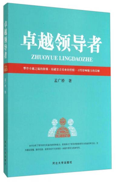 领导者应该是什么?领导者应该有什么?领导者应该做什么?这是每个领导者都会思考的问题。能否正确理解,并在实践中固强补弱,是成为一名优秀领导的关键。走向卓越,根本是要有明确的目标,关键是要用科学的方法,基础是修炼有良好的心态,而学习是拥有这些的最佳途径。《卓越领导者》凝结着作者二十多年对领导力的研究成果,是众多领导者实践经验的提炼。通过阅读《卓越领导者》,一定会让您插上飞向辉煌的翅膀。