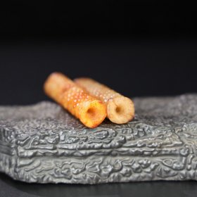 • 旧藏 和田玉勒子,玉质细腻油润,包浆老道,尺寸 长 7.8厘米,宽 1.5厘米,重 54.5克