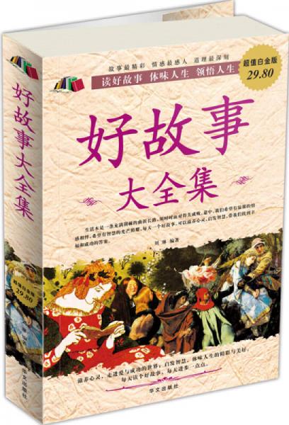 这本《好故事大全集》是迄今为止同类书籍中最全面、最经典、最权威、最新颖的版本,《好故事大全集(超值白金版)》精选了数百个最具价值、最有启发性、最有指导意义的经典小故事,分为“最感动人的心灵故事”、“最精彩的成功故事”、“最启发入的智慧故事”、“最激励人的哲理故事”四篇,内容精彩动人,故事发人深省。书中有对幸福生活的感悟、战胜挫折的勇气、闪烁光辉的美德和发人深省的人生智慧,有温馨感人的爱情、荡气回肠的亲情。阅读《好故事大全集(超值白金版)》,你能感受到心灵的震颤,能接触到纯真的思想,能感动于亲情的伟大和爱情的无私。每个故事后的“智慧箴言”则起到画龙点睛的作用,让人在紧张繁忙的工作和生活中可以静下心来沉淀自己,审视自己,提高自己。每读一个好故事都是一次心灵的邂逅,用心感受,才会有属于自己的收获。一个精致的、发人深省的好故事不仅可以指明前进的方向,解答生活中的迷惑,还可以改变你的思想,进而改变你的-生。
