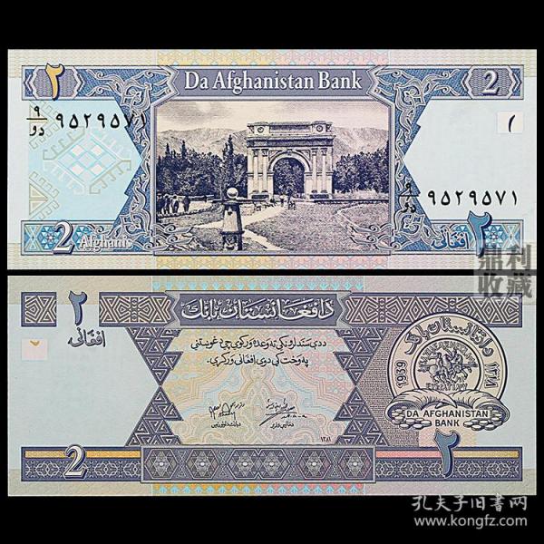 阿富汗2尼2002年亚洲外国钱币世界各国纸币外币货币收藏