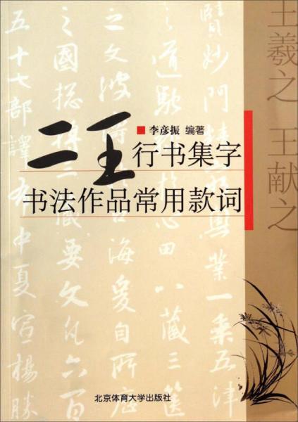 书法作品中的款词是指正文以外的文字,包括上款、下款,它是整幅作品章法中的一部分,虽不是正文,却也关系到作品的成功与否。《二王行书集字:书法作品常用款词》作者李彦振根据题款中经常涉及到的词语,广搜王羲之、王献之所书碑帖,从中遴选出有关范字,组成款词,以供书者临摹选用。