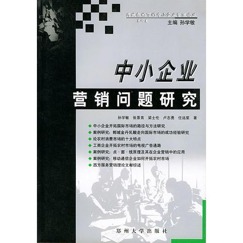 中小企业国际营销 中小企业开拓国际市场的路径与方法研究 中小企业与国际贸易纠纷解决机抽 案例研究:郸城金丹乳酸走向国际市场的成功经验研究 中小企业农村市场营销 农村市场潜力和开拓农村市场的问题 开拓农村市场的政府责任和企业方法 论农村消费的十大特点 工商企业开拓农村市场的电视广告通路 案例研究:点、面、线原理及其在企业营销中的应用 农村生产资料市场特点和农资营销存在的问题 案例研究:一拖”唱响“东方红” 案例研究:“康佳”成功进军农村市场经验研究 案例研究:移动通信企业如何开拓农村市场 中小服务企业营销 西方服务营销理论文献综述 顾客服务导向战略:价值与实施要略 案例研究:中都饭店营销战略研究 附录 中小企业国际市场开拓资金管理办法(试行)