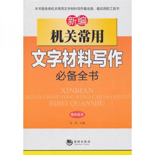 机关文字材料写作是机关工作人员的一项重要工作,同时也是做好机关工作的重要体现。为了提高机关工作人员的写作能力和工作效率,满足机关工作人员实际写作能力的需求,我们特组织人员编写《新编机关常用文字材料写作必备全书》。
