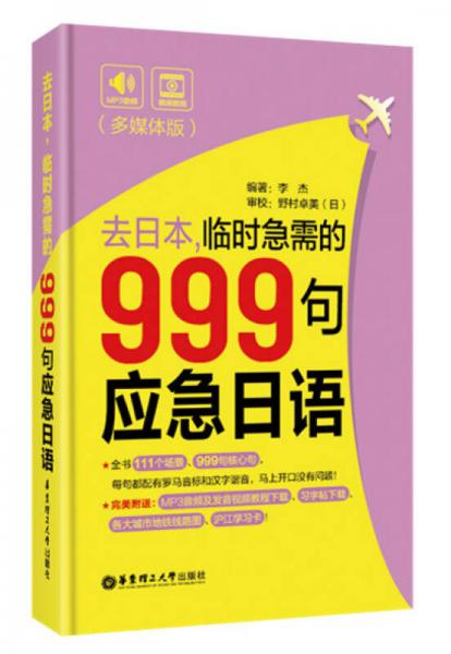 《去日本,临时急需的999句应急日语(多媒体版)》共由11大模块、111个小场景组成。每个场景又精心设计了9个常用短句,总共999个,每个句子除标注其读音及罗马音之外,还加上了相似的汉语谐音,以帮助大家更快地上口。所有场景涵盖了衣食住行等各个方面,基本上满足了我们日常生活中的各种交流需求,面面俱到,让你的沟通与表达不再有后顾之忧。