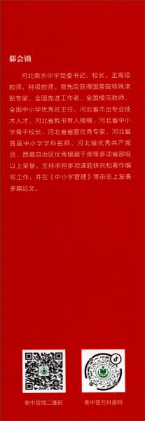 序:追寻教育该有的样子第一章 实践思考追求卓越:以“精神特区”引领生命成长――河北衡水中学“精神立校”的思考与实践凝聚家校合力的“衡中经验让教师发展贯穿整个办学过程――以河北衡水中学实践为例教育创新的发展目标与体制创新的艰巨探索――河北衡水中学人文教育与素质教育改革创新的几点启示精神的力量以精神立校,让学生成人成才立德树人让学生终身受益“五大办学指南”教育思想阐述衡中精神内涵阐释衡水中学“四大办学战略”的思考与实践第二章 讲话发言责任・拼搏・追求――在2018届学生毕业典礼上的讲话勇担新时代责任,培养创新型人才――在首届“一带一路”基础教育知名学校校长论坛上的发言追求卓越,铸就人生新梦想――在2018-2019学年度开学典礼上的讲话强化规范全面提升创建无愧于伟大新时代的新衡中――在2019“规范提升年”动员大会上的讲话激扬青春理想,争做新时代的追梦人――在18岁成人礼上的致辞青春心向党,建功新时代――在五四青年教师座谈会上的讲话青春绽放,卓越远航――在2019届学生毕业典礼上的讲话勇担时代新责,创新人才培养――在第二届“一带一路”基础教育知名学校校长论坛上的发言新高考改革背景下的坚守与传承――在2019年暑期教师集中学习培训会上的报告砥砺当代青年的精气神,争做追求卓越的衡中人――在2019-2020学年度开学典礼上的讲话幸福都是奋斗出来的――在青年教师座谈会上的讲话壮丽70年,奋斗新时代――在庆祝新中国成立70周年升旗仪式上的致辞灾难磨砺精神,梦想聚集力量――在网络升旗仪式上的讲话……附 校长访谈