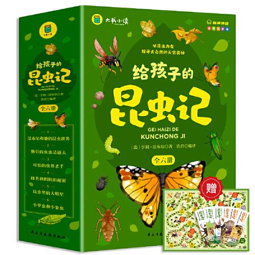 这套给孩子的昆虫记取材于法布尔的昆虫记,昆虫记的作者法布尔以人称叙述他研究昆虫的几十年里的所见所闻特殊的是这些昆虫研究过程并不是以实验报告或的方式呈现的,而是作者的观察随笔,其中不乏优美的语言文字和对昆虫的哲思,以及作者对童年时光的回忆。本书对昆虫记进行改编,保留作者的叙述方式,并且根据昆虫特征、种类将内容分为六类,每类一册介绍了法布尔的生,及一百多种昆虫在不同时期的生活方式和体貌特征。