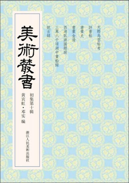 《美术丛书》是上海神州国光社从1911年春开始刊行的一大套关于中国美术的丛书,编者是神州国光社的创办人邓实,后来又有黄宾虹加入。这是集中国古代重要美术著作于一身的大型丛书,依传统四部分类法的“书画、琴谱、篆刻、杂技”,将所收书籍分为“书画类、雕刻摹印类、磁铜玉石类、文艺类、杂记类”等五类,共收书270余种,约300万字。其中书画类最多,占全书七成,其中不甚经见之书,更为言书画者所不可不备。